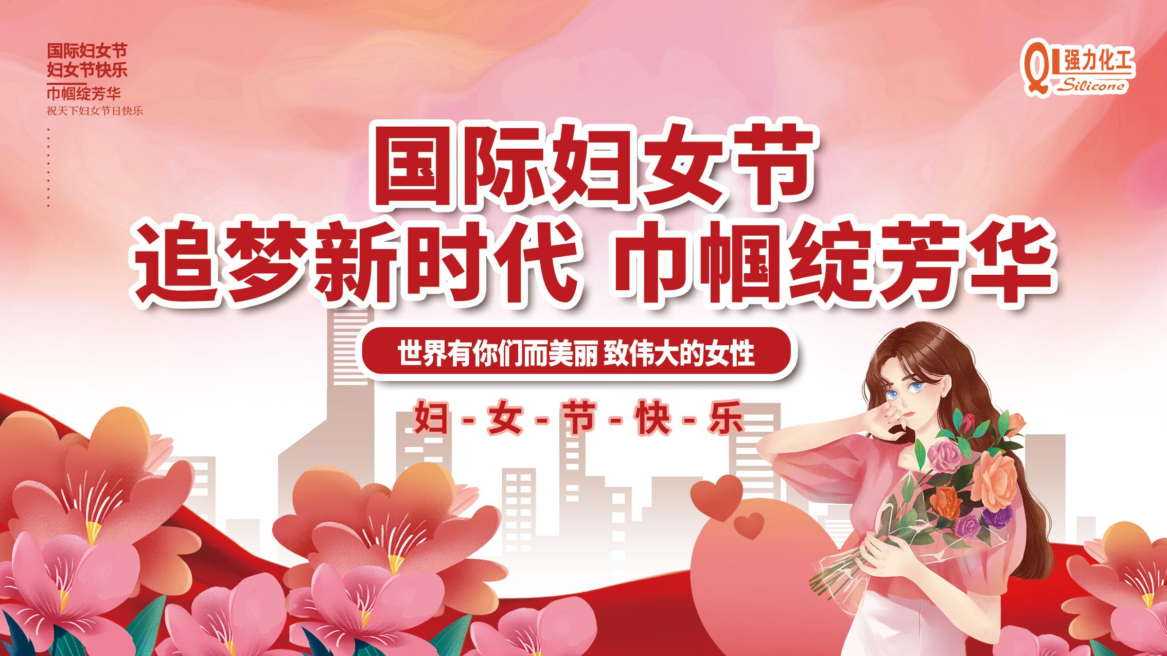 春臨盛世三月天,姹紫嫣紅映紅顏。伴隨著(zhù)融融的春意,我們迎來(lái)了第112個(gè)“三八”國際勞動(dòng)婦女節。在此,強力化工向辛勤工作的婦女同仁們以及世界各國各地的女同胞們,致以節日的問(wèn)候和良好的祝愿!