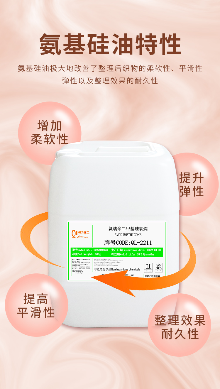氨基硅油是專(zhuān)門(mén)用于紡織品柔軟整理劑的基本成份。它具有最佳的吸附性、相容性及易乳化性。使用混合器或均質(zhì)機,氨基硅油容易被適當的表面活性劑乳化成穩定、透明的微乳液。它可以單獨使用,也可以與其它有機硅或有機柔軟劑組合成為特殊的柔軟整理劑,適用於各種紡織品的柔軟整理。