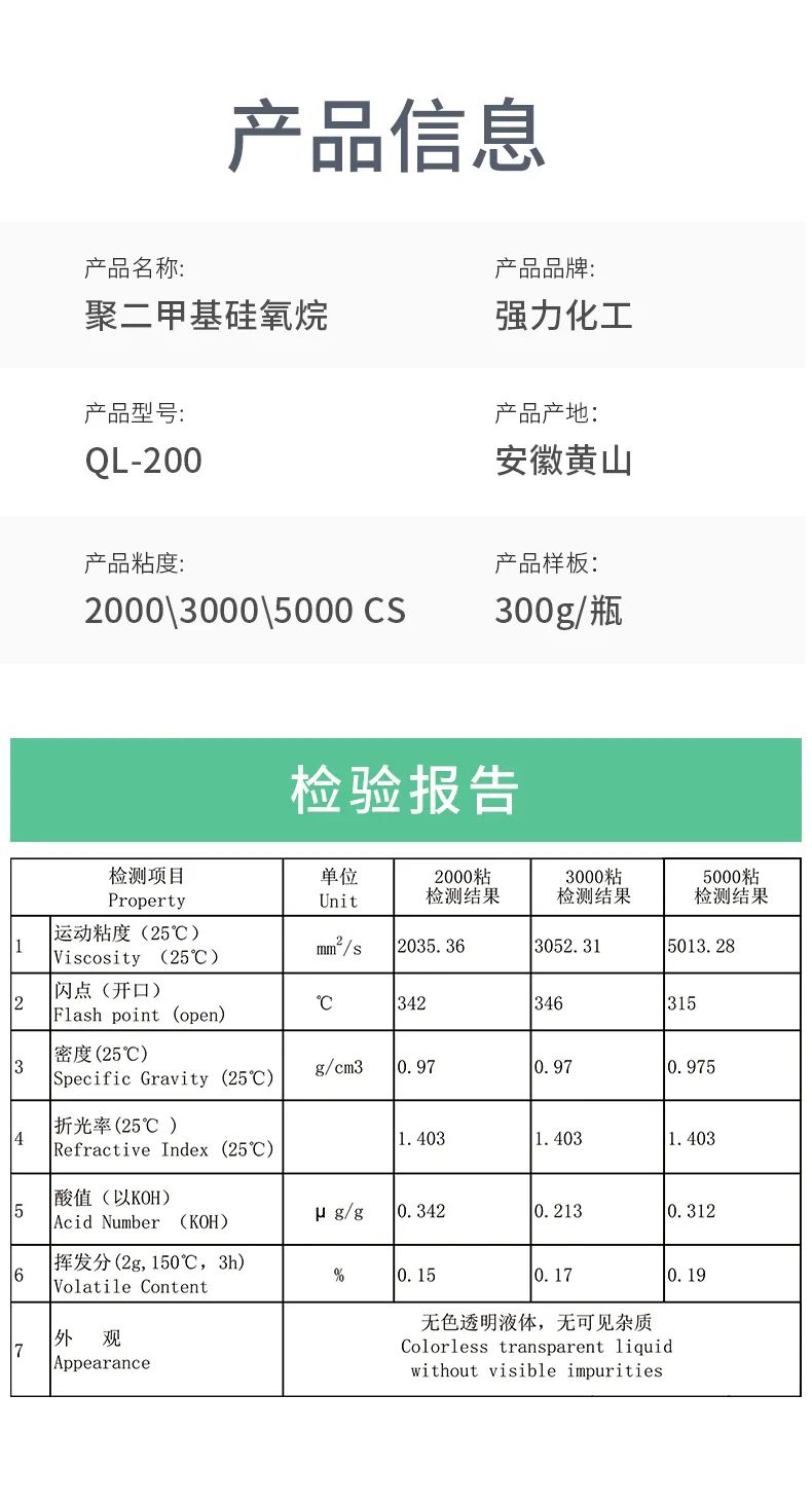 強力化工不斷升級建設,為了響應新老顧客的需求與要求,公司決定新增三個(gè)牌號201硅油,分別是QL-200 DM2000、QL-200 DM3000,QL-200 DM5000。品質(zhì)過(guò)硬,價(jià)格實(shí)惠,歡迎聯(lián)系咨詢(xún)。