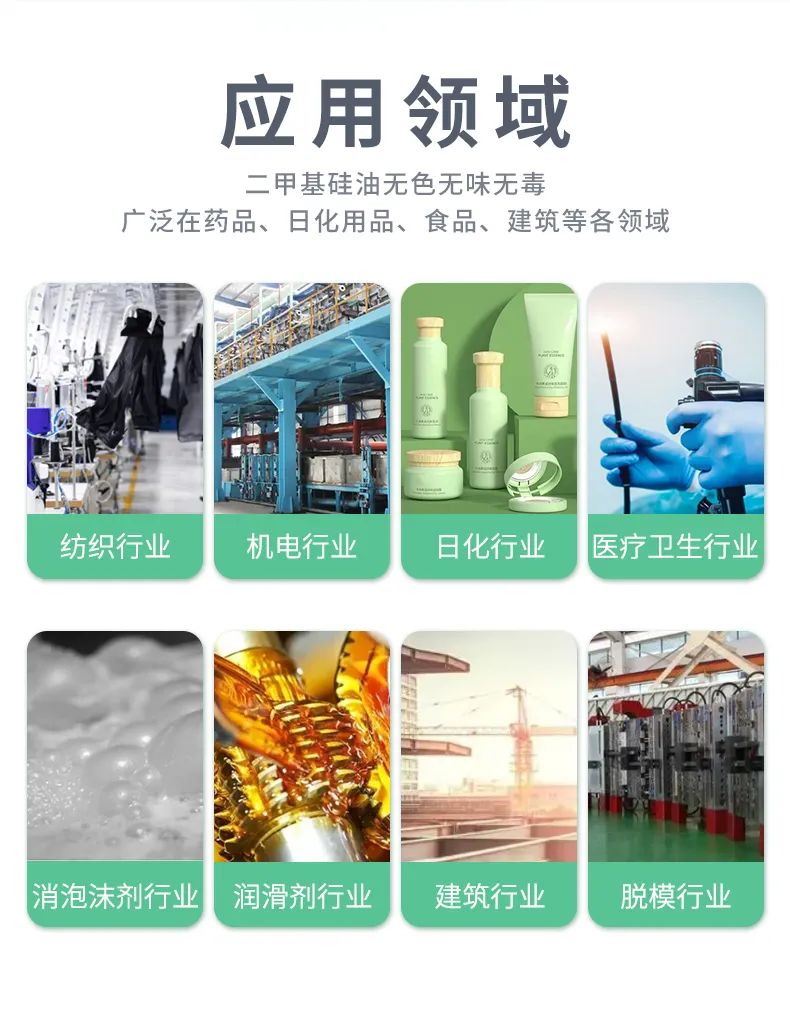 二甲基硅油廣泛用在電機、電器、電子儀表上作為耐溫、耐電弧電暈、抗蝕、防潮、防塵的絕緣介質(zhì)、目前還用做變壓器、電容器、電視機的掃描變壓器的浸漬劑等。在各種精密機械、儀器及儀表中,用作液體防震、阻尼材料。二甲基硅油的消震性能受溫度影響小,多用于具有強烈機械震動(dòng)及環(huán)境溫度變化大的場(chǎng)合下,使用的儀表如:飛機、汽車(chē)的儀表中。用于防震、阻尼、穩定儀表讀數,還可作為液體彈簧,且于飛機的著(zhù)陸裝置中。