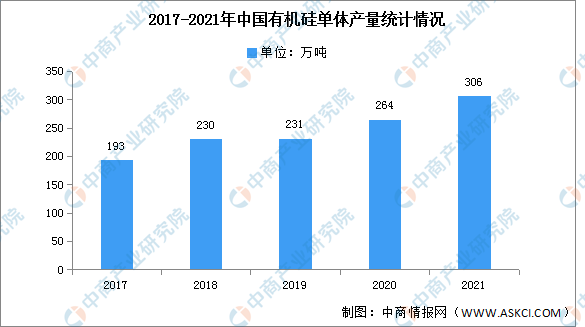 近年來(lái)有機硅產(chǎn)量一直保持穩定增長(cháng),2021年有機硅產(chǎn)量達306萬(wàn)噸,同比增長(cháng)15.9%。