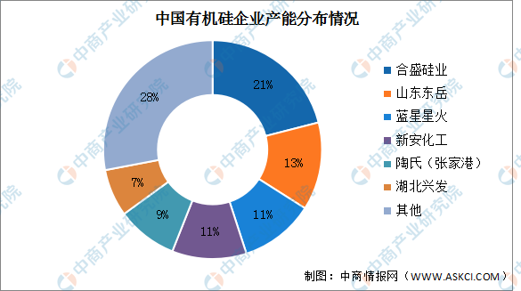 目前,僅有少量的公司具備充足的技術(shù)積累并實(shí)現規模生產(chǎn),前六企業(yè)產(chǎn)能超過(guò)70%。截止至2022年3月底,合盛硅業(yè)的有機硅產(chǎn)能占比最多,達21%。其次分別為山東東岳、藍星星火、新安化工、陶氏(張家港)、湖北興發(fā),產(chǎn)能占比分別為13%、11%、11%、9%、7%。