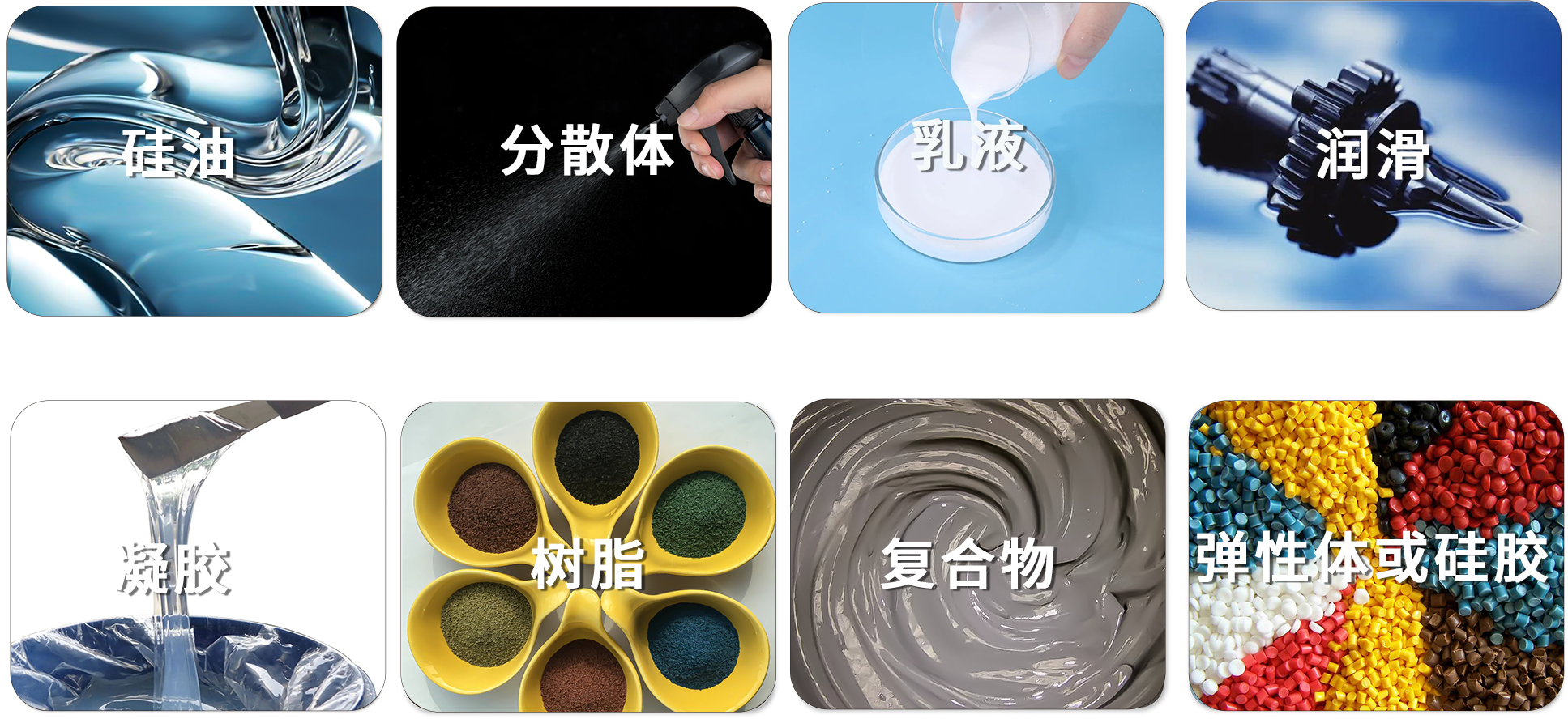 硅油及其衍生物的主要應用為:脫膜劑、減震油、介電油、液壓油、熱傳遞油、擴散泵油、消泡劑、潤滑劑、疏水劑、油漆添加劑、拋光劑、化妝品和日常生活用品添加劑、表面活性劑、顆粒和纖維處理劑、硅脂、絮凝劑。