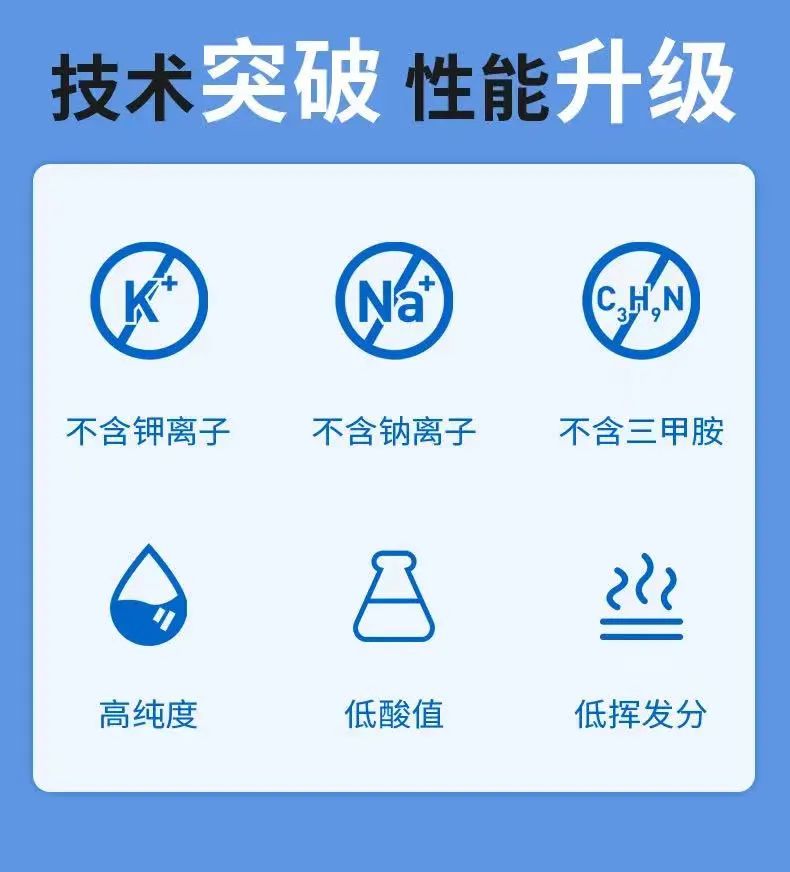 葉光華 ▎強力化工產(chǎn)品的特色主要有三點(diǎn),一是酸值低,二是揮發(fā)分低,三是高閃點(diǎn)。能做到低酸值是因為技術(shù)差異,我們的產(chǎn)品不含鉀離子、鈉離子、三甲胺。