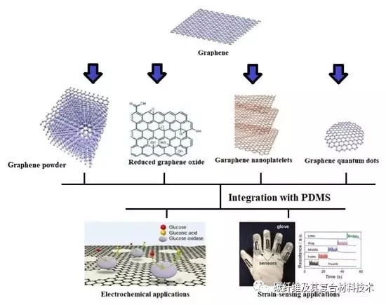 此外,還有一些導電聚合物,例如聚苯胺(PANI)、聚乙炔(PA)、聚吡咯(PPy)和聚(3,4-乙烯二氧噻吩)聚苯乙烯磺酸鹽(PEDOT:PSS),它們需要極少量甚至不需要金屬納米顆粒來(lái)形成導電通路。在上述聚合物中,聚二甲基硅氧烷(PDMS)性質(zhì)相似,兩者都具有化學(xué)惰性、光學(xué)透明、疏水性,且大多具有生物相容性,因此PDMS與石墨烯形成復合材料的材料。此外,已知PDMS與納米填料形成強界面結合。這些復合材料可以為目前可用的健康手環(huán)、葡萄糖傳感器和智能手表增加新的維度,用于監測人體生理狀態(tài)的響應性和準確性。