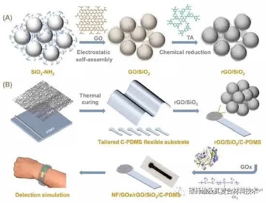 此外,它還可以引入更多的二次傳感材料,從而增強其多功能化能力。使用沉積在碳納米管(CNT)和PDMS復合基底上的rGO涂層二氧化硅(SiO2)納米球、葡萄糖氧化物和Nafion溶液檢測汗液中的葡萄糖?;瘜W(xué)電阻氣體傳感器由rGO和氧化鋅(ZnO)納米棒制成。