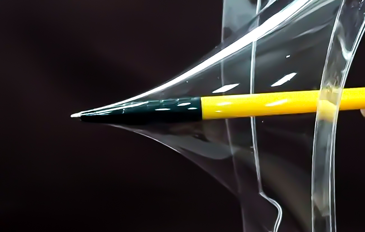 3)薄膜具備彈性,在拉伸一定長(cháng)度后(只要不拉斷),薄膜均會(huì )恢復原來(lái)形狀,不會(huì )有明顯形變變化;