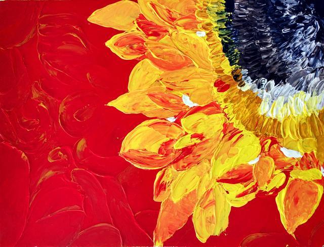 4、它還具有油畫(huà)和丙烯畫(huà)所沒(méi)有的多樣性,畫(huà)厚質(zhì)畫(huà)它可以不斷的堆積,呈現出浮雕般的效果而不會(huì )塌陷;