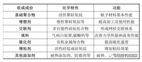 縮合反應型硅膠,一般是以端羥基聚硅氧烷為基礎聚合物,多官能硅烷或硅氧烷為交聯(lián)劑,在催化劑作用下,室溫下遇水汽或混勻即可發(fā)生縮合反應,形成三維網(wǎng)絡(luò )彈性體??s合反應型硅膠的基本組成及化學(xué)功能如下所示。
